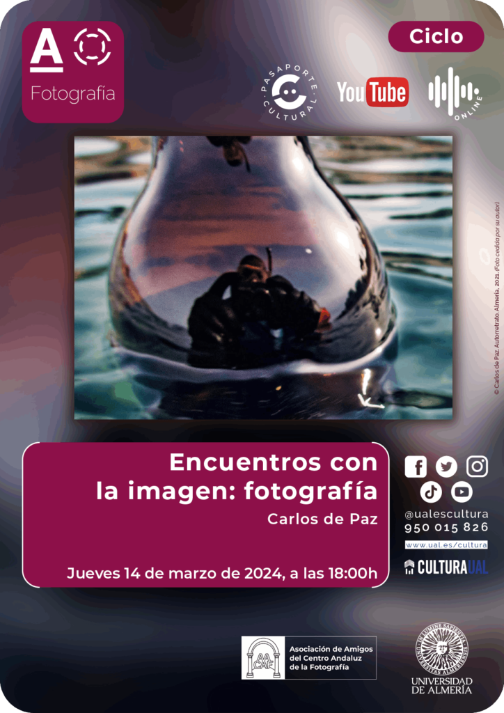 Carlos de Paz es el siguiente invitado al ciclo de diálogos organizados por la Asociación de Amigos del Centro Andaluz de la Fotografía y la Universidad de Almería con destacados miembros de la comunidad fotográfica nacional en los que se pretende mantener una conversación en torno a la fotografía en general, al trabajo que cada uno de ellos ha venido desarrollando y a las opiniones que tienen sobre ella, su actualidad y su futuro, con la posibilidad de interactuar con los invitados por parte de las personas inscritas.